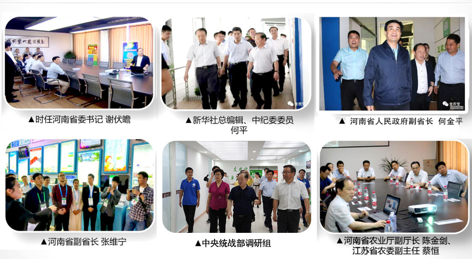 支農(nóng)寶的發(fā)展得到各級(jí)領(lǐng)導(dǎo)的關(guān)心和支持。時(shí)任河南省委書記謝伏瞻,河南省副省長何金平,新華社總編、中紀(jì)委委員何平,國家發(fā)改委調(diào)研組,河南省政協(xié)副主席、工商聯(lián)主席梁靜,團(tuán)省委書記王藝,全國青聯(lián)主席李榮,中央統(tǒng)戰(zhàn)部調(diào)研組,市委、市政府和睢陽區(qū)委區(qū)政府主要領(lǐng)導(dǎo)等都曾蒞臨支農(nóng)寶調(diào)研,并給予很高的評(píng)價(jià)。